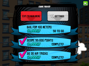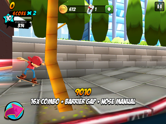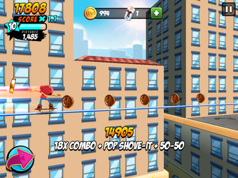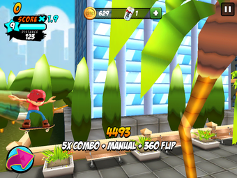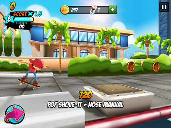 Los mandos se presentan a través de un tutorial progresivo muy bien realizado. Al principio del juego solo tienes que ocuparte de movimientos sencillos: mantener pulsado y soltar para hacer un ollie, deslizar hacia arriba para hacer un kickflip y hacia abajo para un indy. A medida que ganes más puntos, desbloquearás más movimientos.